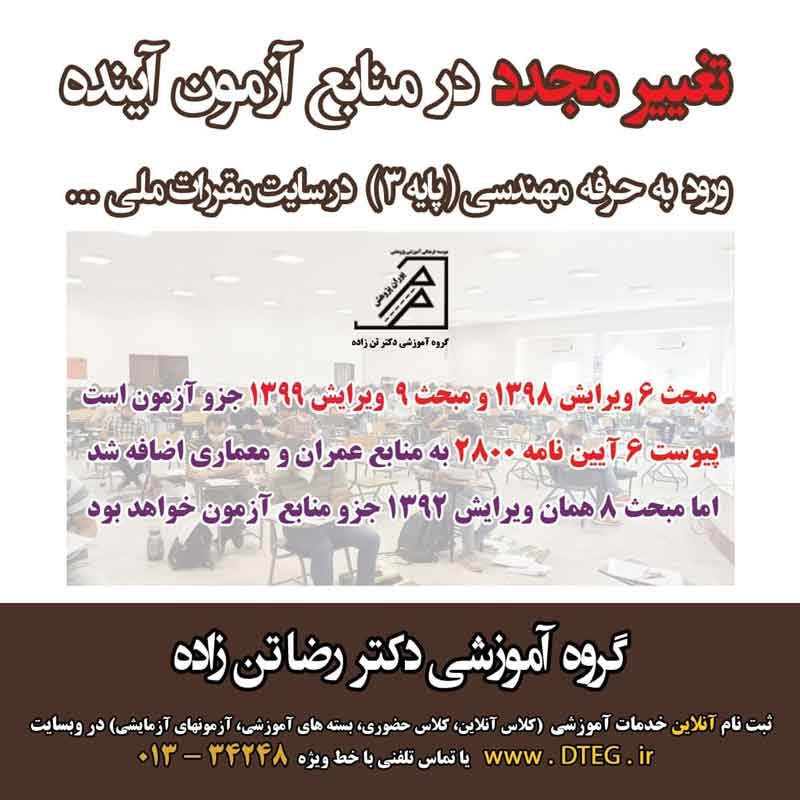 بر اساس تغييرات رخ داده در طول چند روز مختلف، نهايتا در سايت دفتر مقررات ملي ساختمان، منابع آزمون آينده، با چند تغيير اساسي معرفي شدند …