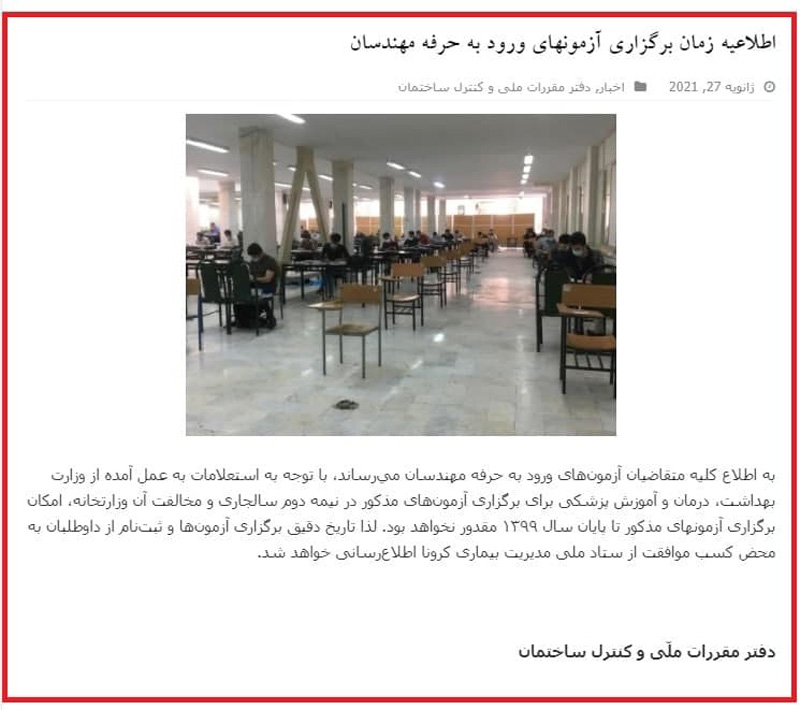 🔸همانگونه که در جریان هستید، به علت شیوع ويروس کرونا، آزمون اسفند98 که قرار بود 15 و 16 اسفند برگزار گردد، لغو و در 3 و4 مهر 99 برگزار شد (که حتي زودتر از خود سايت مقررات ملي و ساير سايتها در همين کانال اطلاع رساني قطعي شد). و از طرف ديگر ادامه و حتي تشديد شرايط کرونا در کشور باعث شده برگزاري آزمون آينده با حرف و حديث هايي همراه باشد. طبق اعلام دفتر مقررات ملي ساختمان، “برگزاري آزمون پايه 3 نظام مهندسي اسفند 99 ، منوط به کسب موافقت ستاد ملي کرونا مي باشد. چنانچه اين موافقت تا 3 ماه پيش از زمان برگزاري ابلاغ شود، ثبت نام از داوطلبان شروع خواهد شد”