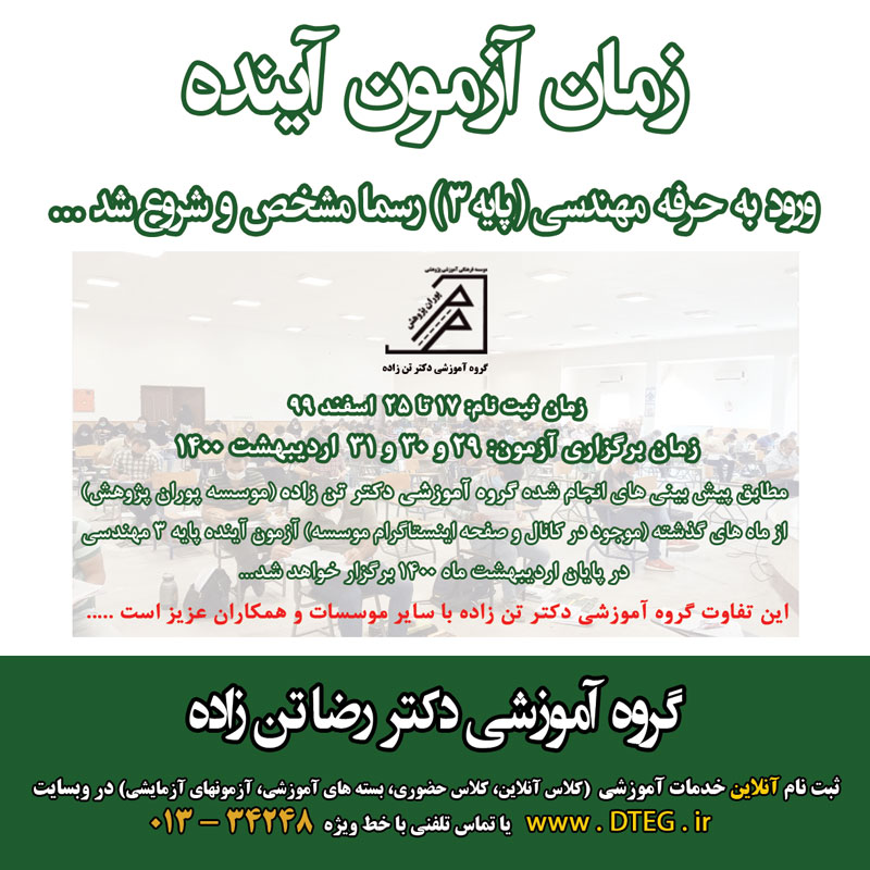 اعلام رسمی زمان ثبت نام و برگزاری آزمون پايه 3 نظام مهندسي اردیبهشت 1400 17 اسفند 1399 ارسال شده توسط مدیریت گروه آموزشی دکتر تن زاده، آزمون پایه 3 نظام مهندسی، عمران، معماری، برق، مکانیک، همه رشته ها اعلام رسمی زمان ثبت نام و برگزاری آزمون پايه3 نظام مهندسي اردیبهشت 1400 🔸 زمان ثبت نام: 17 تا 25 اسفند 1399 🔸 زمان برگزاری آزمونها: روزهای 29و30و31 اردیبهشت 1400 فایل دفترچه راهنمای ثبت نام آزمون اردیبهشت 1400 برچسب ها: مقررات مليثبت ناماصلاحیهلوله کشی گاز طبیعیتاسیسات مکانیکیابلاغ اصلاحیهآزمونآزمون نظام مهندسیثبت نام آزمونمقررات ملي ساختمان
