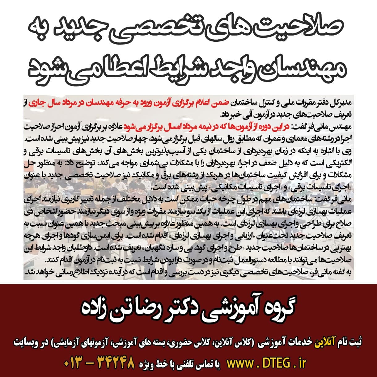 قبلی زمان جدید آزمون ورود به حرفه مهندسی ( پایه3 ) اعلام شد ...