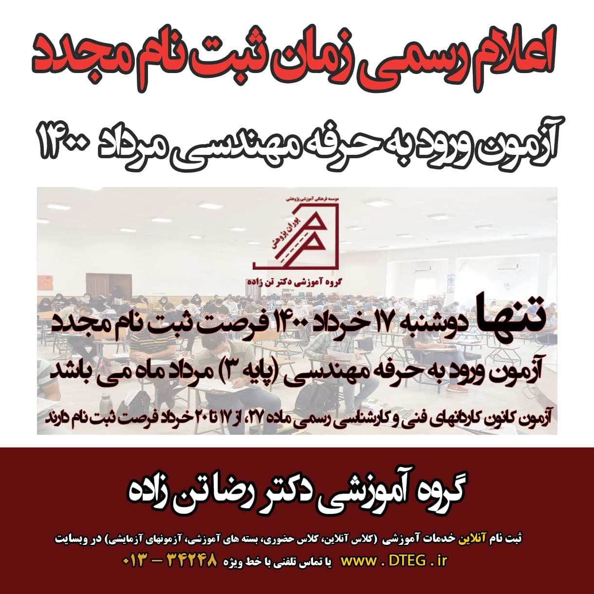 ابلاغ رسمی زمان ثبت نام مجدد آزمون ورود به حرفه مرداد 1400 و ثبت نام آزمون کاردانهای فنی و …