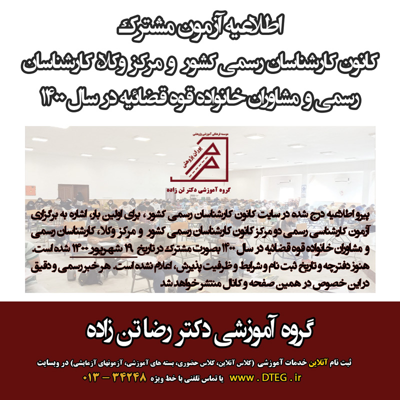 اطلاعیه آزمون مشترک کانون کارشناسان رسمی کشور و مرکز وکلا، کارشناسان رسمی و مشاوران خانواده قوه قضائیه در سال 1400