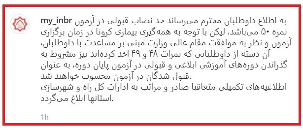 قبولی مشروط نمـــرات 48 و 49 به علت همه گیری شرایط کرونـــا آزمون مهندسی مرداد 1400