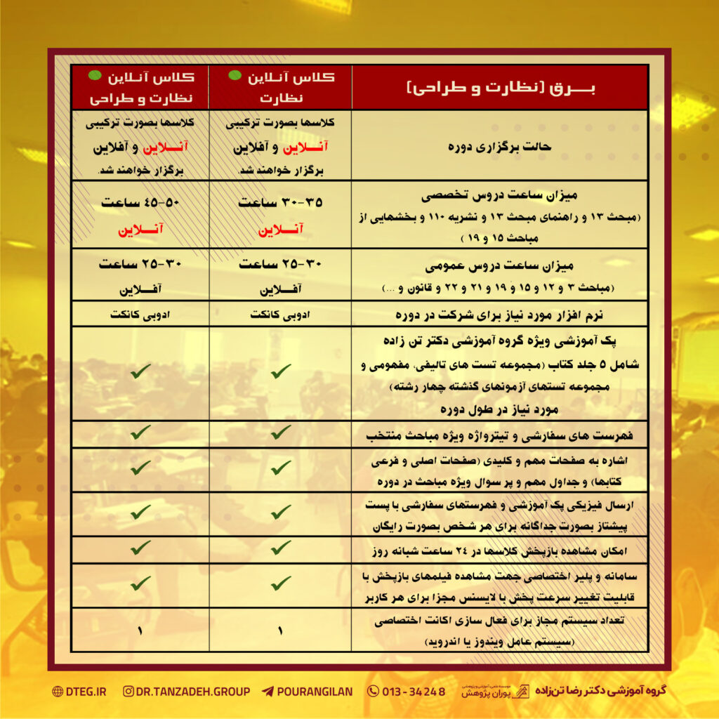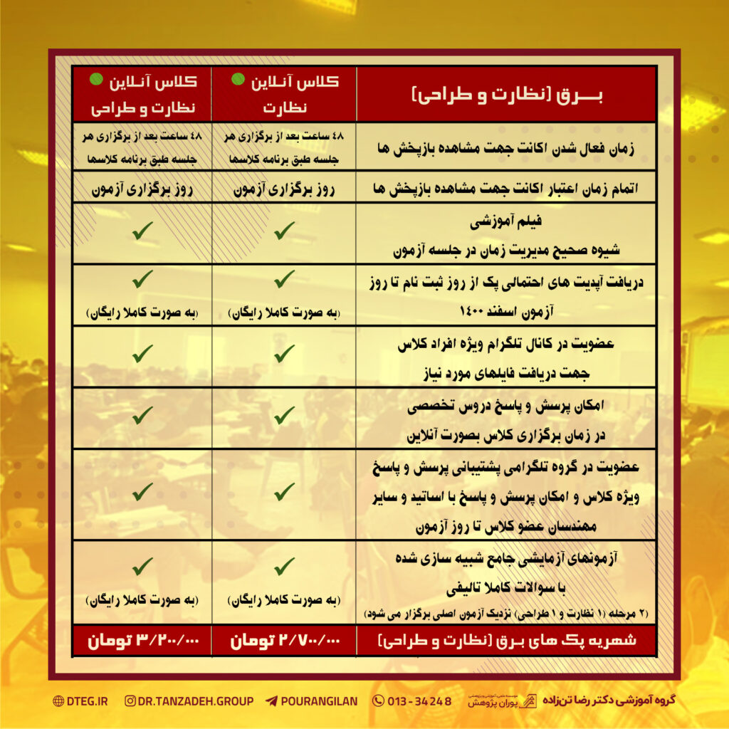 کلاس آنلاين برق (نظارت) آمادگي آزمون ورود به حرفه مهندسي (پايه 3):