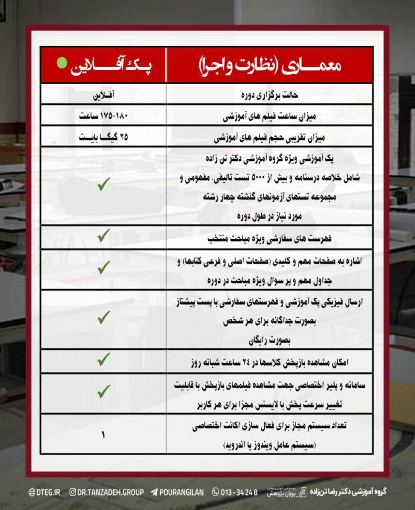 پک آفلاین معماری (نظارت و اجرا) ویژه آمادگي آزمون ورود به حرفه مهندسي (پايه 3):