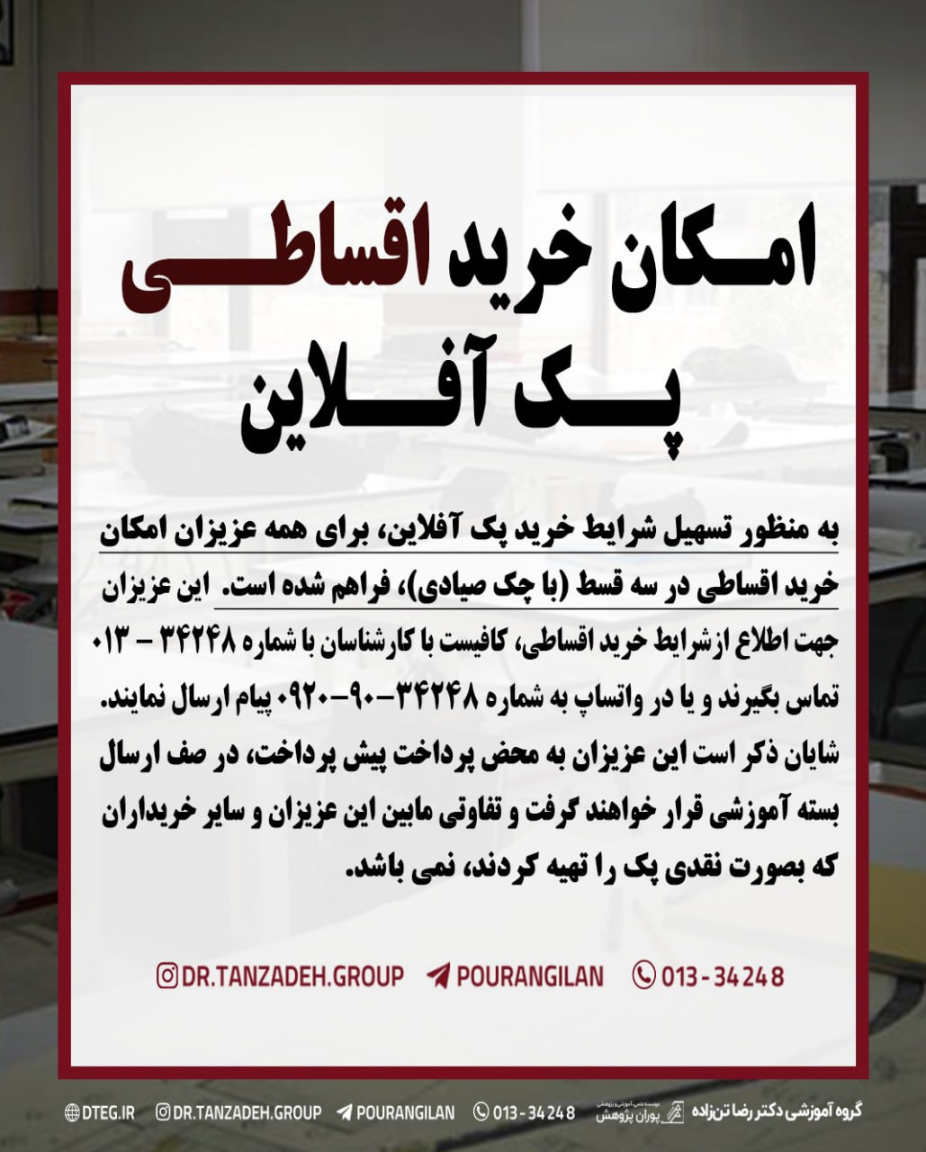 📗– بدون نياز به رفت و آمد به موسسه و ثبت نام از طریق سایت و یا تماس تلفنی