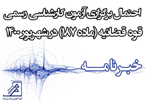 احتمال برگزاری آزمون کارشناسی رسمی قوه قضائیه (ماده 187) در شهریور 1400 در صورت شرایط مناسب بیماری کرونا در کشور ...